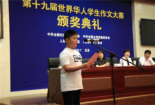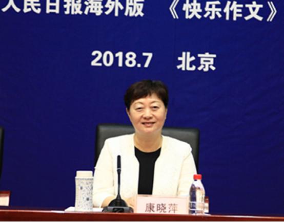 2018年7月21日上午,由中國僑聯、全國臺聯、人民日報海外版和《快樂作文》雜志聯合主辦的第十九屆世界華人學生作文大賽頒獎典禮在北京舉行,中國僑聯副主席康曉萍出席并致辭。來自中國、德國、美國、荷蘭、日本、比利時、加拿大等國家的百余名獲獎師生代表歡聚一堂,共賞美文佳作,感受華文魅力。