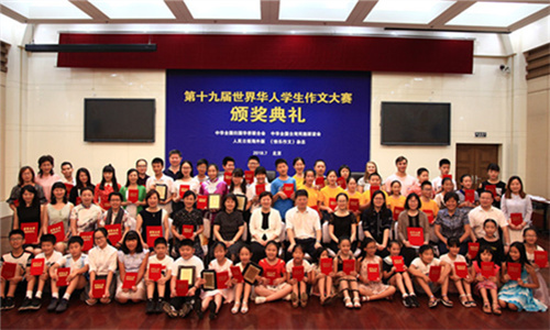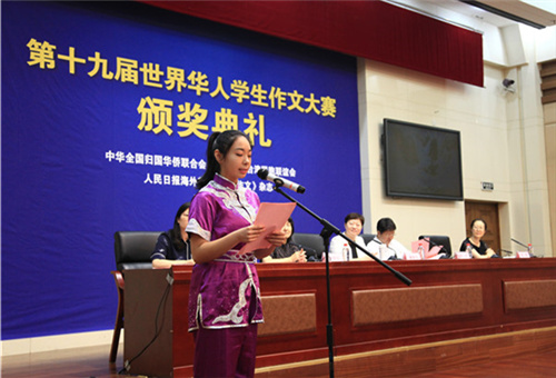 中國僑聯、全國臺聯、人民日報海外版、《快樂作文》雜志等單位的領導向獲獎者頒發了證書。人民日報海外版科教部主任劉菲宣布第二十屆世界華人學生作文大賽啟動!犊鞓纷魑摹冯s志總編輯關平主持頒獎典禮。