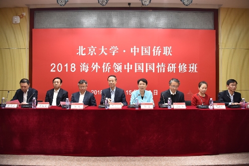 10月16日上午,由中國僑聯主辦的2018海外僑領中國國情研修班在北京大學開班,中國僑聯黨組書記、主席萬立駿出席開班式并講話。中國僑聯黨組成員、副主席隋軍主持開班儀式,黨組成員、副主席李波出席開班式并為學員授課,北京大學黨委副書記安鈺峰出席開班式并致辭,來自26個國家的60多位僑領參加開班式。