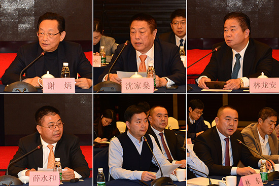 座談會上,創世企業集團董事長劉藝良、世茂集團董事局主席許榮茂、華彬集團董事會主席嚴彬、正大集團資深執行副總裁謝毅、正大制藥集團董事長謝炳、華燊發展集團主席沈家燊、禹洲集團董事局主席林龍安、匯融集團董事長薛水和、杭州林東新能源科技股份有限公司董事長林東、北京金恒豐科技有限公司董事長施乾平等僑商分別發言。