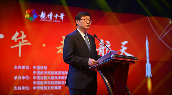 萬立駿在演出前致詞,代表中國僑聯向航天科技集團全體干部職工表示新春問候和崇高敬意!他說,習近平總書記在新年賀詞中提到的2018年度重大科技成就就有嫦娥四號探測器成功發射、北斗導航向全球組網。新年伊始,中國又在人類歷史上首次實現航天器在月球背面軟著陸和巡視勘察,今年的航天發射也實現了開門紅。對此,廣大歸僑僑眷和海外僑胞深受鼓舞,為航天人、為偉大祖國倍感驕傲和自豪。航天戰線歸僑僑眷相對集中、英才云集,他們為航天事業發展做出了突出貢獻,這是僑界共同的光榮。萬立駿號召廣大歸僑僑眷和海外僑胞大力學習和弘揚航天精神,在以習近平同志為核心的黨中央堅強領導下,努力奔跑,爭做新時代的追夢人,為實現中華民族偉大復興的中國夢作出應有的貢獻。
