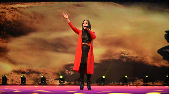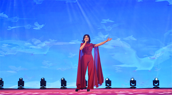 中國戲曲學院孫云崗副教授用嗩吶等10種吹管樂器演奏一曲《華夏同心曲》,女子水晶樂坊深情彈唱《我愛你中國》,東方歌舞團郭蓉激情高歌《紅旗飄飄》,抒發航天科技工作者情系桑梓、赤誠報國的愛國熱忱。