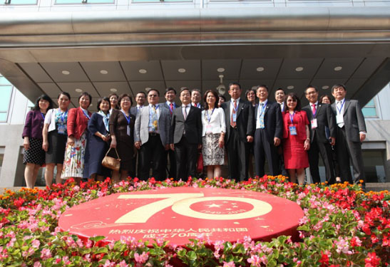 會見結束后,齊全勝等與代表團全體成員在國慶花壇前合影留念。下午,代表團一行參觀了中國華僑歷史博物館。