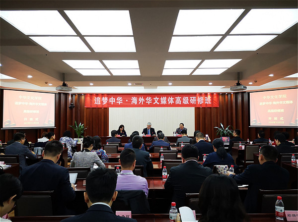 11月2日,由中國僑聯和中華文化學院共同主辦的“追夢中華·海外華文媒體高級研修班”在北京舉行開班儀式。此次研修班共有來自五大洲34個國家和地區的67家海外華文媒體負責人、骨干編輯、記者參加,中國僑聯信息傳播部部長左志強、中華文化學院教務部主任王志功等出席了開班儀式。