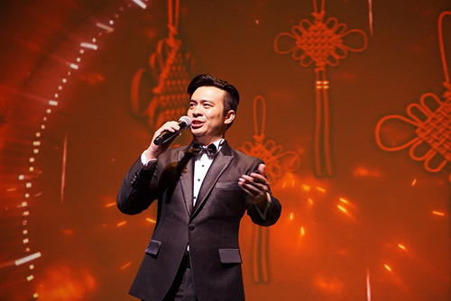 歌唱演員張原銘在觀眾的掌聲與應和聲中演唱了《咱老百姓》和《永恒的旋律》等歌曲,又清唱一曲悠揚的《在那遙遠的地方》,將僑胞的神思送到大洋彼岸那片日夜思念的土地。