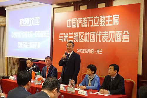 (意大利當地時間)2019年12月1日至5日,中國僑聯主席萬立駿率代表團訪問意大利,出席中國僑聯歐洲地區海外委員座談會,深入米蘭、佛羅倫薩、普拉托、羅馬,走訪僑社、看望僑胞、了解僑情,宣講黨的十九屆四中全會精神,介紹國內經濟社會發展和僑聯工作情況,聽取旅歐僑胞有關工作意見和建議,更好地聚僑心、集僑智、匯僑力。他表示,中歐關系是世界上最重要的雙邊關系之一,中國把歐洲放在對外關系的重要位置。面對當今世界百年未有之大變局,面對新時代中國改革發展的需要,廣大旅歐僑胞要始終心系祖(籍)國,勇擔歷史使命,發揚僑界傳統,發揮自身優勢,做愛祖(籍)國、愛社會主義的先行者,中華文明的傳承傳播者,實現中華民族偉大復興、構建人類命運共同體的推動者,中歐友誼的民間使者,堅持“一國兩制”、推進祖(籍)國統一的奮斗者,不斷學習、不斷創新、團結向上的實踐者。