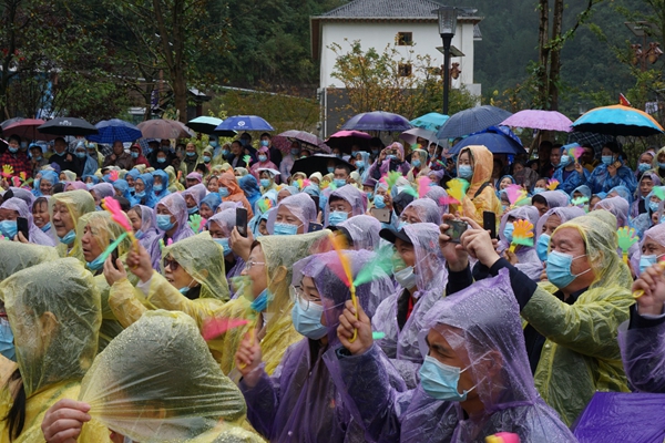 “太好看了,看不夠!”演出現場,86歲的馬培清披著雨衣,和在場1000多名觀眾一樣,始終看得興致勃勃,舍不得走。