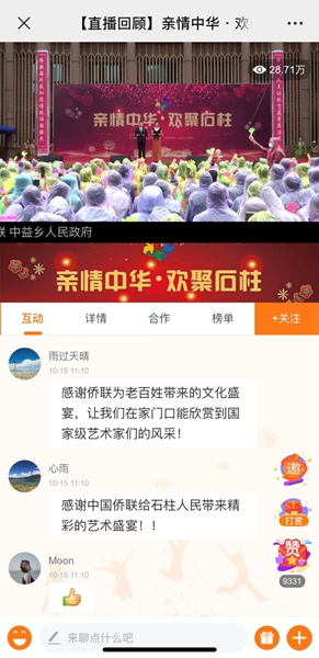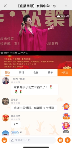 “感謝僑聯為老百姓帶來的文化盛宴!”“家鄉的老百姓太有福氣了!”“規格高、效果好、意義重大!”……除了現場觀眾一片叫好,15日的演出還在石柱生活網全程直播,吸引28.71萬人次的觀看量,網友刷屏點贊,其中不乏石柱籍的海外僑胞。