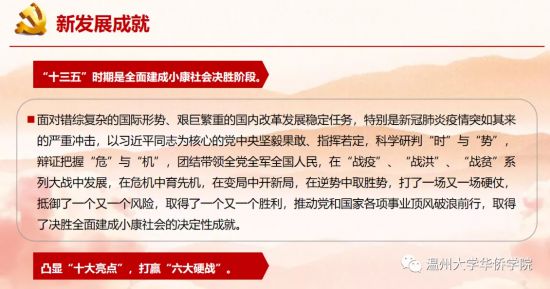 通過本次講座,我對于祖國過去一年和“十三五”期間我國取得的偉大成就、在發展過程中面臨的新形勢以及所處的發展階段有了全面深刻的認知。