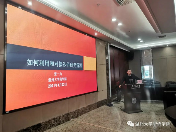 1月23日上午,中國華僑華人研究(溫州大學)基地學術工作坊第二期在溫州大學巖松堂白鹿廳舉行,溫州市僑聯副主席楊海曼、溫州肯恩大學副校長嚴曉鵬、麗水學院方明教授、溫州大學張一力教授、青田縣僑聯華僑史料征集辦公室主任、華僑學院兼職顧問周峰等30余名涉僑研究專家學者齊聚一堂,共話華僑華人發展,共享學術盛宴。學術工作坊由溫州大學華僑學院常務副院長包含麗主持。