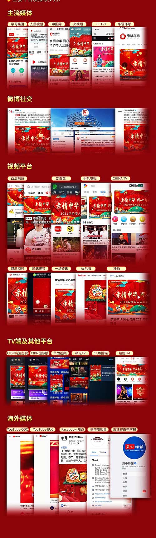 闔家團圓除舊歲,全球共迎中國年。由中國僑聯主辦的“親情中華·同心與共”2021華僑華人云端春節晚會于2月9日下午16:00通過“學習強國”學習平臺、人民視頻、中國網、央視頻、CCTV+及新浪微博、西瓜視頻、華人頭條、CIBN互聯網電視等網絡平臺播出,在海內外僑界引起熱烈反響。據統計,截止2月9日21:00,網絡觀看量累計達2403.5萬人次。