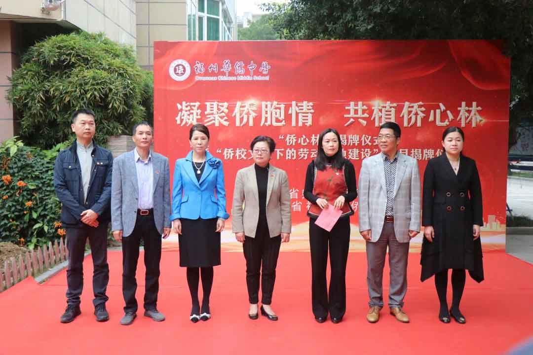 隨后,在領導、來賓以及師生們的見證下,與會嘉賓共同為“僑心林”和“僑校文化下的勞動基地建設”項目揭牌。