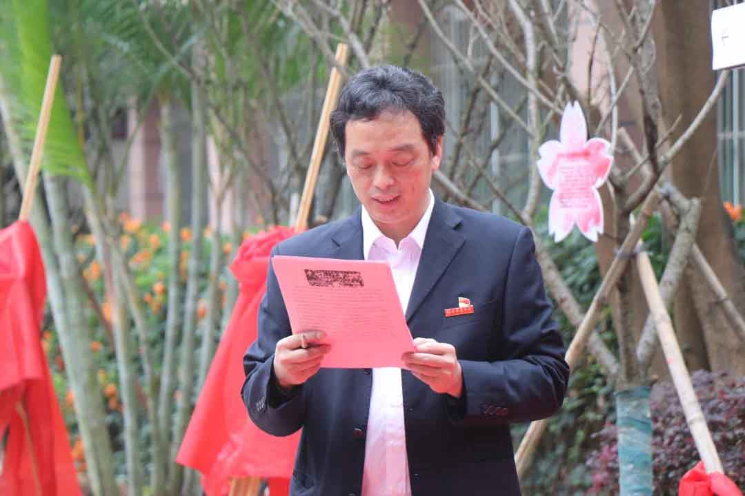 在揭幕儀式上,劉燕校長對福建省僑聯領導和各位僑領、校董蒞臨我校參加“僑心林”植樹節系列活動表示熱烈歡迎。同時她代表學校全體師生向長期以來對學校發展給予關心支持的各界人士表示衷心感謝。她表示,此次活動福建省僑聯以及校董王彬女士、劉丹蕻女士共同為學校捐贈了十棵櫻花樹和十棵茶花樹,種植在學校綠化園,象征著華僑精神在華僑中學生根、開花。百年大計,教育為本。教育育人,鑄魂為本。本次活動以3月12日傳統植樹節為契機,以“僑心林”,“僑校文化下的勞動基地”為平臺,引導學生認識華僑,不斷厚植華僑精神,潤物無聲地給學生以人生啟迪、智慧光芒、精神力量,不斷增強愛國主義教育的吸引力、感染力和影響力,切身體驗感知華僑華人愛國情感,激發愛國之情與投身報國之行同頻共振。福州華僑中學與華僑有著解不開的緣分,有著根深蒂固的鏈接。相信學校在習近平總書記的題詞“弘揚愛國傳統,傳播中華文化”指引下,堅持“僑魂德澤,止於至善”的辦學特色,定能把華僑精神在一代又一代僑中人中傳承下去,激勵僑中學子篤學上進,勵志報國。