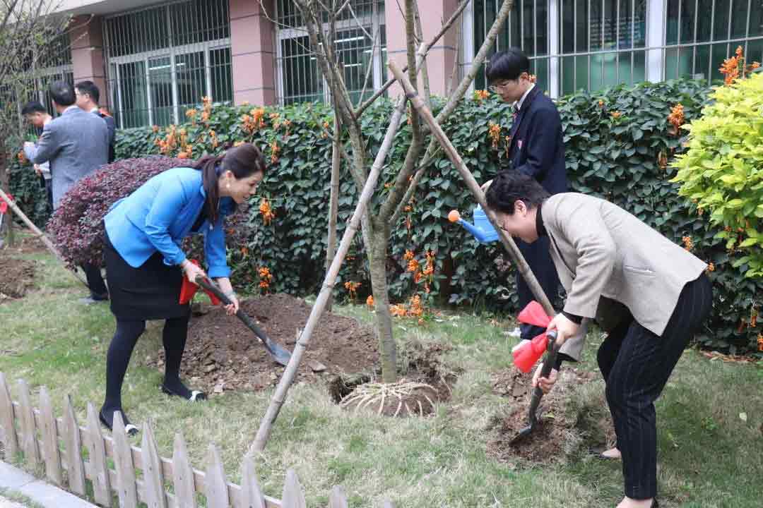 揭幕儀式后,全體領導、來賓、師生們來到僑心林親手種下一株株櫻花樹。那一株株象征著希望的櫻花樹,就像僑中朝氣蓬勃的學生一樣迎著陽光更加燦爛,就像僑中蒸蒸日上的事業迎著黨的陽光更加輝煌,就像愛國愛鄉的華僑背靠祖國彰顯著“進取、勤勞、開放、包容、奉獻”的華僑精神。