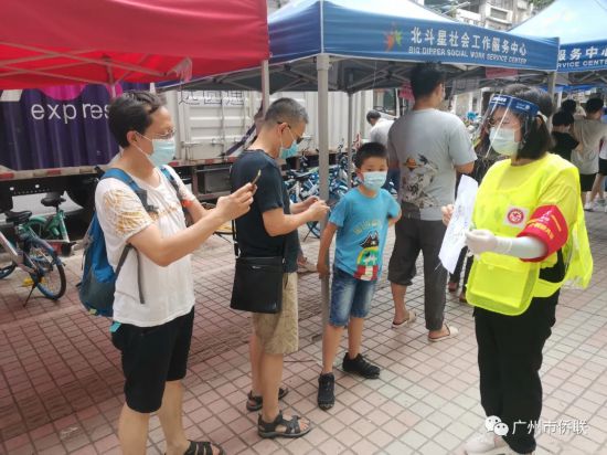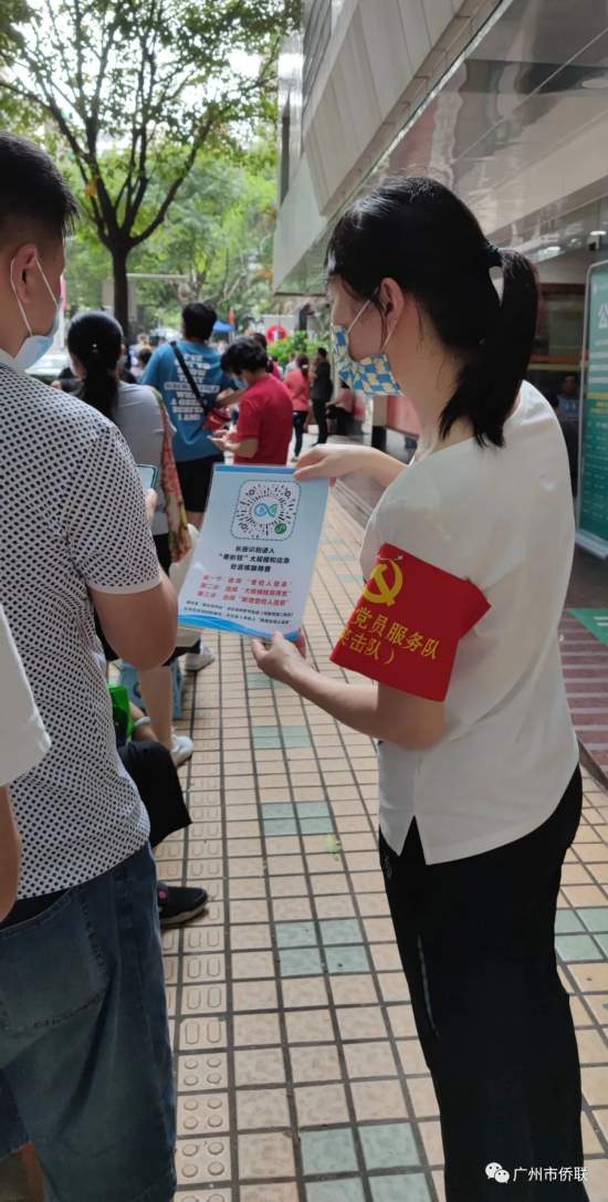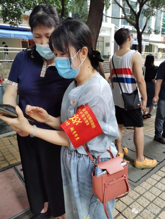 主要領導親自帶隊,第一批黨員突擊隊準時抵達越秀區建設街,突擊隊員們頂著艷陽、迎著熱浪,穿著志愿者服,戴著口罩、護目鏡和醫用手套在崗位上站點奔走、宣講政策、解難答疑。
