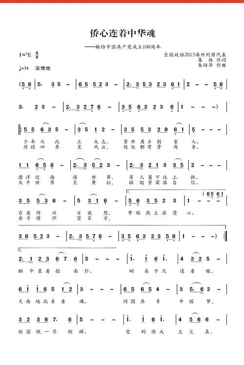 有幾個特殊的感動點讓朱培華反復思考:“作為海外僑胞,謳歌祖(籍)國的歌曲很多,但是自發創作謳歌黨的歌曲不夠多,建黨百年,這是一個很好的契機;我們這些人都是很早就去海外發展的,雖然遠離故土,但更能感受到在中國共產黨領導下,中國所取得的舉世矚目的發展成就,以及這種成就帶給海外游子的自豪和底氣;此外,新冠肺炎疫情以來,海外僑胞更加能夠通過中外疫情防控工作的對比,體會到中國共產黨的偉大,體會到這個政黨強大的生命力和向心力,以及帶給全中國人民的堅定信心和決心!