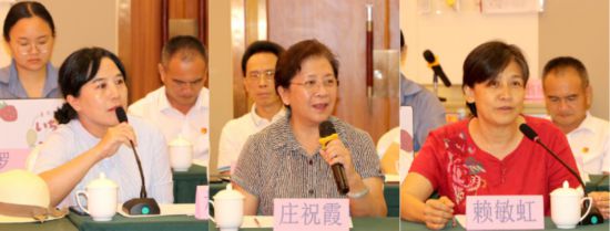 美國歸僑林紓(左),瓊崖縱隊副司令員莊田的女兒莊祝霞(中),省南僑機工歷史研究會會長賴敏虹(右)在座談會上暢談感受