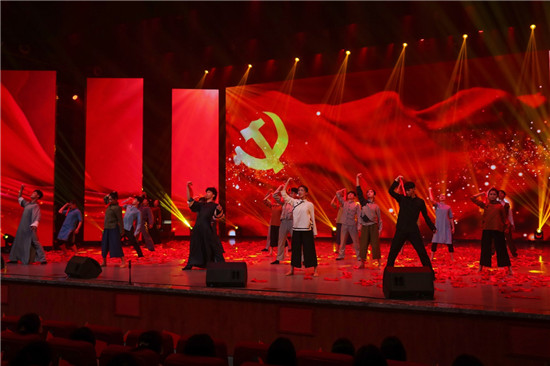 海南省文昌中學舞蹈團表演的舞蹈《紅船》展現了浙江嘉興南湖一條小船承載歷史選擇、民族希望,劈波斬浪駛向輝煌的歷史畫卷。