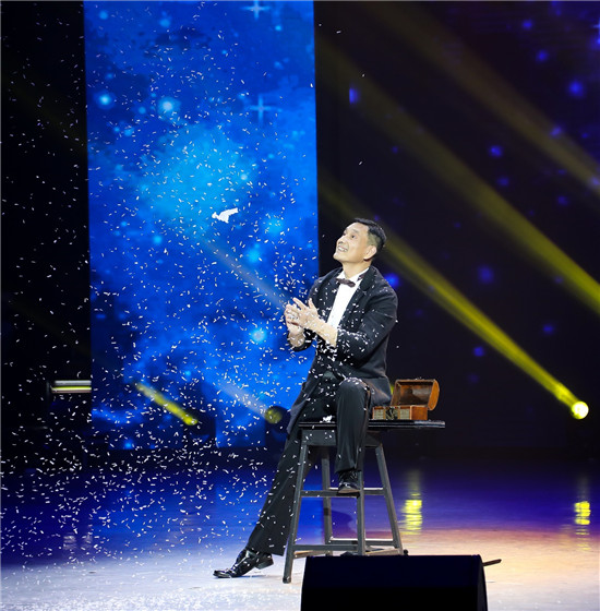 國家金獎魔術師、國家一級演員吳松濤的魔術《鴿劇魅影》令觀眾眼花繚亂,嘖嘖稱嘆。
