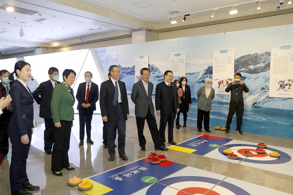 落成典禮結束后,領導嘉賓們一同觀看了“共筑夢想 同赴未來——華僑華人與冬奧”主題展。展覽分為“僑心相系 百年圓夢”“冰雪世界 夢想啟航”“環球菁英 逐夢賽場”“赤誠丹心 冬奧有我”“冰雪運動 人人參與”5個篇章,通過近400張圖片、300多件展品、200多個視頻以及100余件藝術作品,多角度、全方位回顧展示海外僑胞和歸僑僑眷為中國體育事業特別是冰雪運動所發揮的重要作用,集中展示全球僑胞作為見證者、宣講者、助力者對北京舉辦冬奧會的美好祝愿和熱切期盼,彰顯海內外中華兒女同圓共享中華民族偉大復興中國夢的美好愿景。