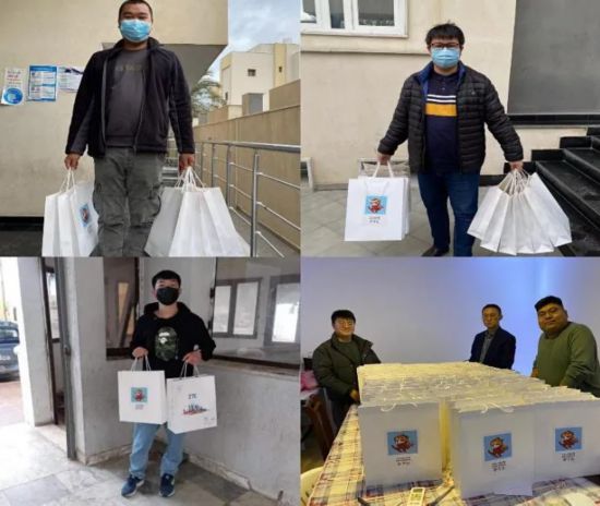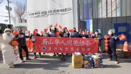 在蔚山務工的中國同胞也收到了備有口罩、耳罩、圍脖、手套、面粉、糯米、油、方便面、桔子等物資的“春節包”。