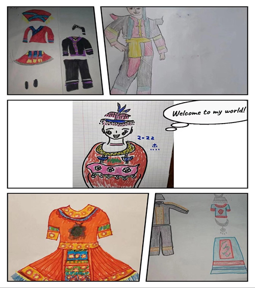 (營員們上完“走進世界苗鄉”課程后,畫出多姿多彩的苗族服飾)