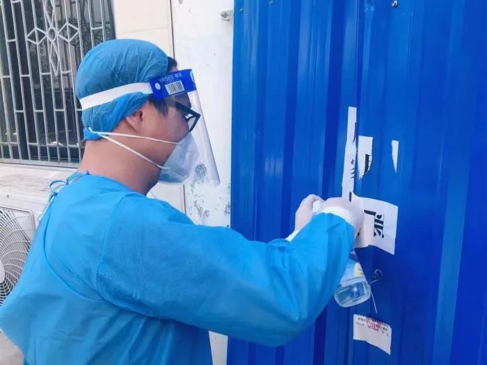 海南省僑聯志愿者李樹炬在六建小區對損壞封條進行更換
