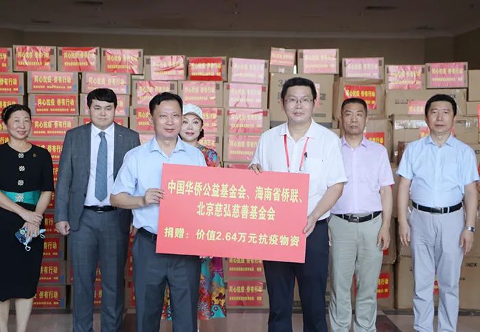 中國華僑公益基金會、海南省僑聯、北京慈弘慈善基金會捐贈志愿者防疫包420個,價值人民幣2.64萬元