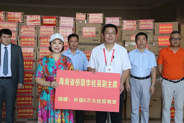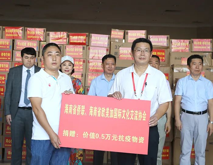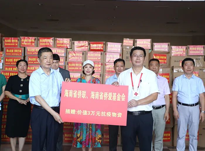 8月23日下午,海南省僑聯在?谂e行接受捐贈抗疫物資交接儀式