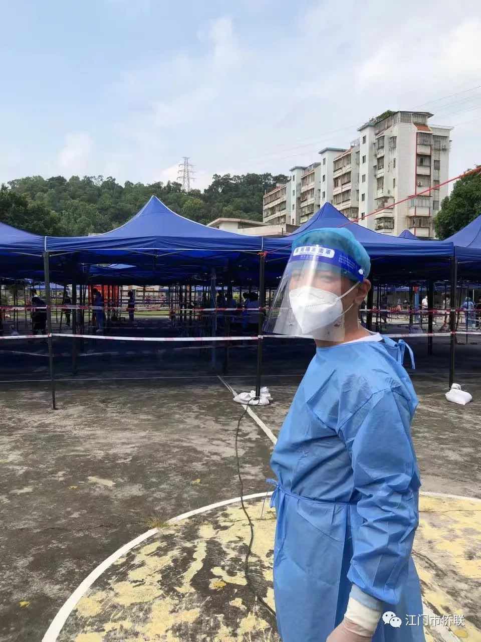 除了各級僑聯組織黨員干部主動投身一線防疫工作外,江門市各級僑聯組織還積極號召在江門的僑胞、歸僑僑眷、留學生等僑界志愿者穿上防護服,投身到志愿服務的行列中。