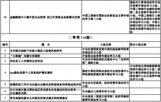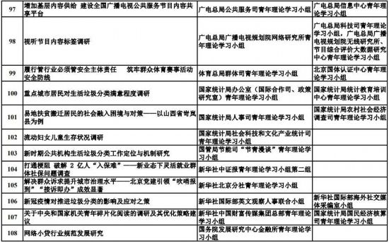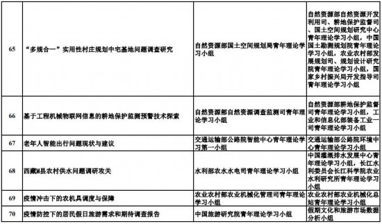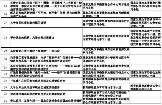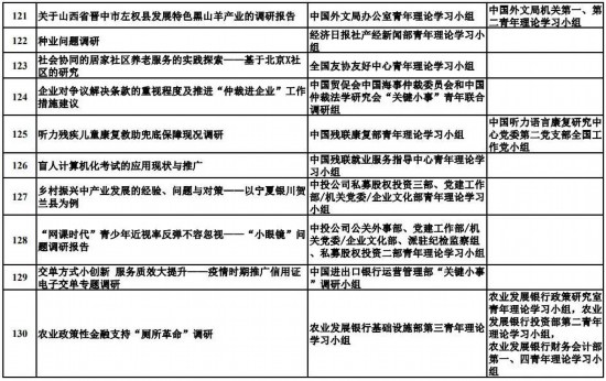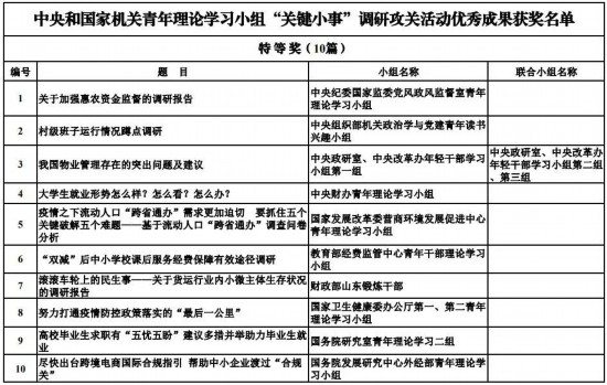 中央和國家機關青年理論學習小組“關鍵小事”調研攻關活動優秀成果獲獎名單