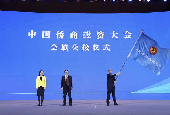 高峰論壇上舉行了中國僑商投資大會會旗交接儀式。下一屆中國僑商投資大會將于今年下半年在江蘇省舉辦。
