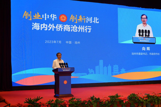 向輝在講話中指出,滄州歷來高度重視僑務工作,制定出臺了一系列利僑惠僑護僑的政策,希望廣大僑商僑胞通過此次推介活動,將創新活力和創業熱情匯聚滄州,滄州將傾力打造市場化、法治化、國際化一流營商環境,提供優質高效的全方位、精準化服務,全力支持僑商在滄發展壯大,與大家共享發展機遇、共謀合作新篇、共創美好未來。