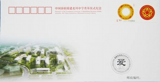 首日封——中國僑聯援建北川中學奠基儀式紀念封