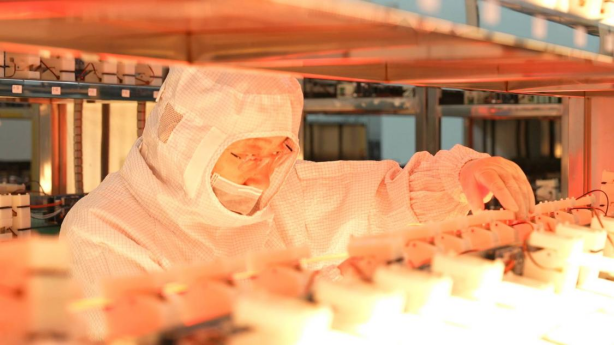在湖南省長沙市一個工廠的智能生產車間里,中國體外診斷專家、分子生物學家戴立忠博士正在帶領團隊,對PCR模塊智能生產線的產能進行討論和改進。