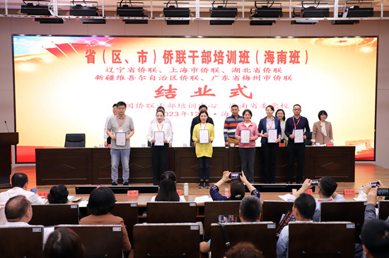 本期培訓班由中國僑聯干部培訓中心、遼寧省僑聯、上海市僑聯、湖北省僑聯、新疆維吾爾自治區僑聯、廣東省梅州市僑聯以及海南省委黨校共同舉辦。遼寧省僑聯黨組成員、副主席崔明,湖北省僑聯黨組成員、副主席王慧萍,新疆維吾爾自治區僑聯兼職副主席陳少欽,梅州市僑聯黨組成員、副主席王映萍出席結業式,來自五。▍^、市)僑聯的213名僑聯干部參訓學習。