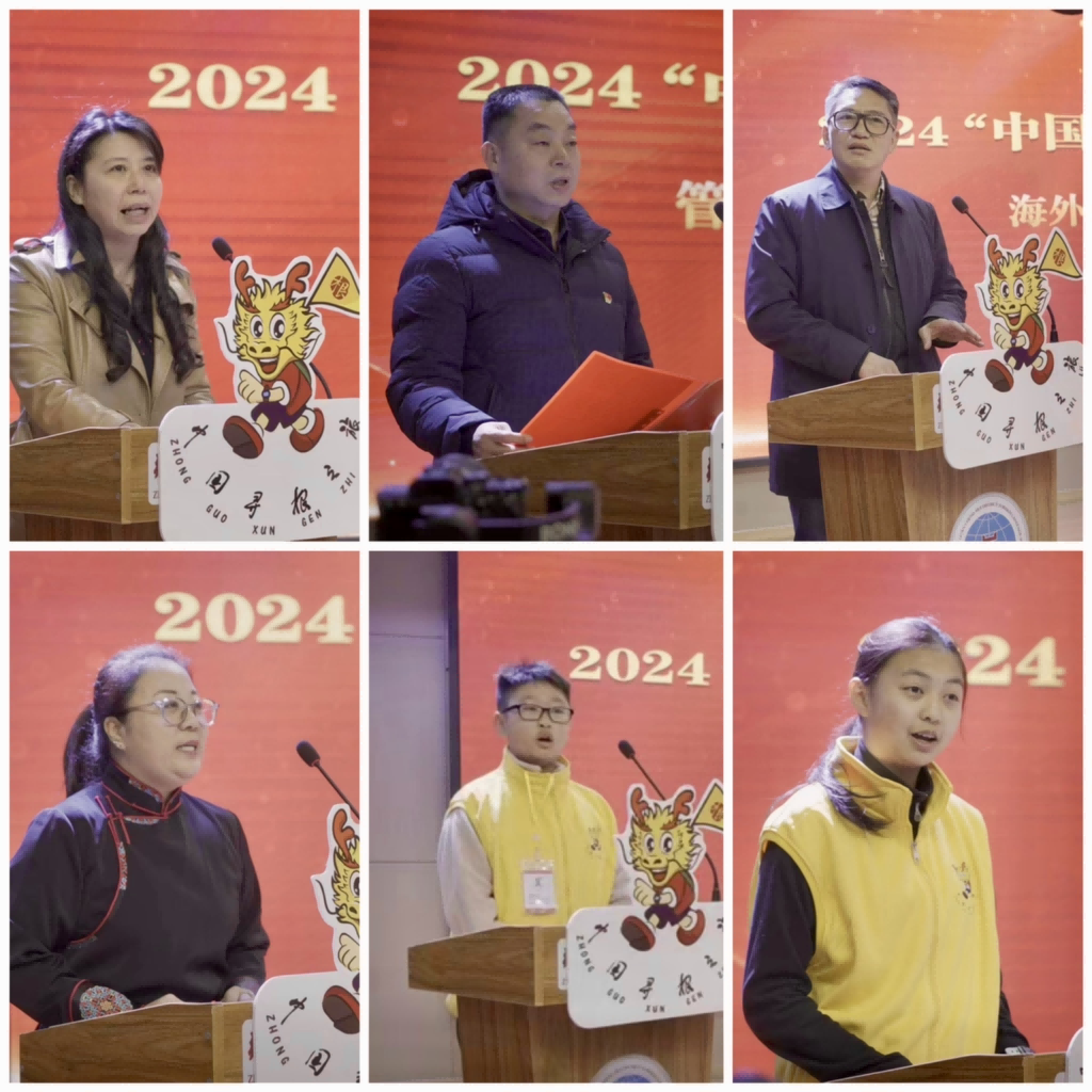 開營儀式上,呂劍、牛海堂、陳向輝向營員代表授旗。全體營員領隊及管城區外國語學校學生代表共同觀看了河南省情宣傳片,聆聽了冬令營的營歌——《黃帝頌》,并見證了莊嚴的授旗儀式。2024“中國尋根之旅”河南冬令營參營單位還帶來了詩朗誦《江河》、歌曲《朋友》和管外學生演出《春節的由來+將進酒》、嗩吶獨奏《百鳥朝鳳》等節目。