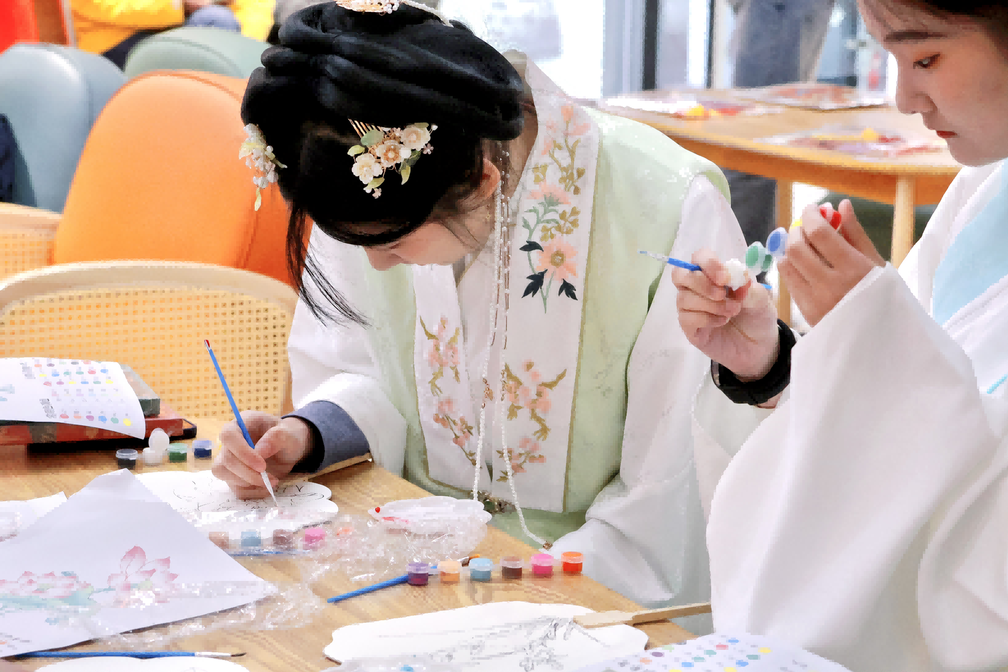 海外華裔青少年印象最深的就是在平潭著漢服行古禮,感受傳統文化之美。課程以“尋根之旅——傳承文化·情暖冬至”為主題,既有漢服妝造體驗,也有講述冬至傳統節日習俗和中國傳統禮儀的文化課,還有投壺、畫扇、龍燈等傳統小游戲和手工制作,學員們沉浸式體驗中國古代傳統文化。課堂上,老師細致地講述著中國傳統禮儀,學員們穿著漢服認真聆聽!皩χ袊鴤鹘y節日習俗和傳統禮儀等相關知識的了解,感受傳統文化之美,激發了我們對優秀傳統文化的學習熱情!睂W員們說。學員們體驗了畫扇、魚燈、龍燈等手工制作。老師耐心地講解著扇子畫獨特的魅力和文化內涵,深深吸引了大家的注意力。隨著一根根線條、一筆筆色彩的描繪,粉紅的荷花、翠綠的竹子等躍然于扇面之上。