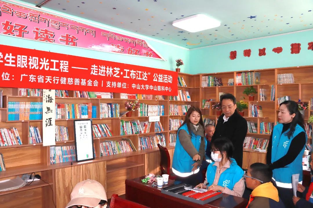 4月16日,“僑愛心工程 暖暖高原情——2024年廣東省天行健慈善基金會林芝市工布江達縣慈善行活動”啟動儀式結束后,中國僑聯黨組成員、副主席連小敏率隊前往江達鄉中心小學眼視光項目的現場,實地考察“僑愛心·鄉村學生眼視光工程——走進林芝工布江達”項目開展情況。中國僑聯基層建設部副部長劉景春,西藏自治區統戰部副部長、工商聯黨組書記、僑聯主席王念東,林芝市委常委、統戰部部長達瓦,珠海市委統戰部副部長、市僑務局局長、一級調研員曹風云等領導陪同前往。廣東省天行健慈善基金會創會會長蔡光、副理事長蔡旻真、理事葉光旭、秘書長常青以及此次慈善行的全體視光師志愿者在項目現場迎接并共同開啟此次活動。
