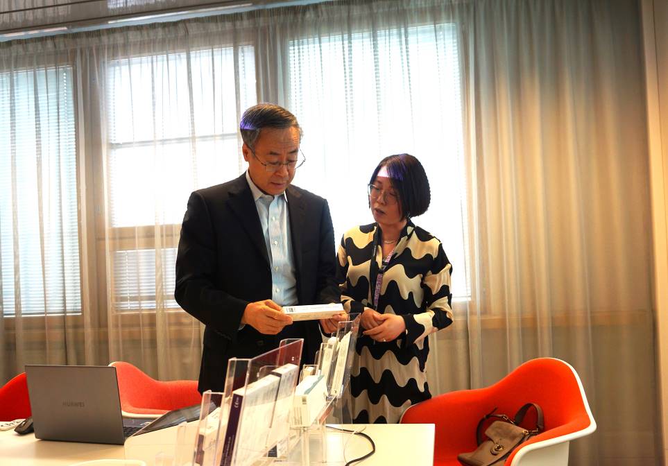 在赫爾辛基科技園區華人生物科技企業調研時,萬立駿詳細了解園區運行模式、發展方向和企業的研發重點、銷售模式、人才結構以及生物醫藥材料設備等開發情況。他表示,中國高度重視生物醫藥等科技創新工作,發展新質生產力、建設創新型國家,不僅需要大批海內外科技人才,也需要加強科技創新領域的國際交流合作。他希望在芬蘭的僑界科技人才立足當地、面向世界,瞄準創新和應用的前沿,加強與國內的交流合作,在實現自身更好發展的同時為推動中芬兩國科技創新和技術進步作貢獻。