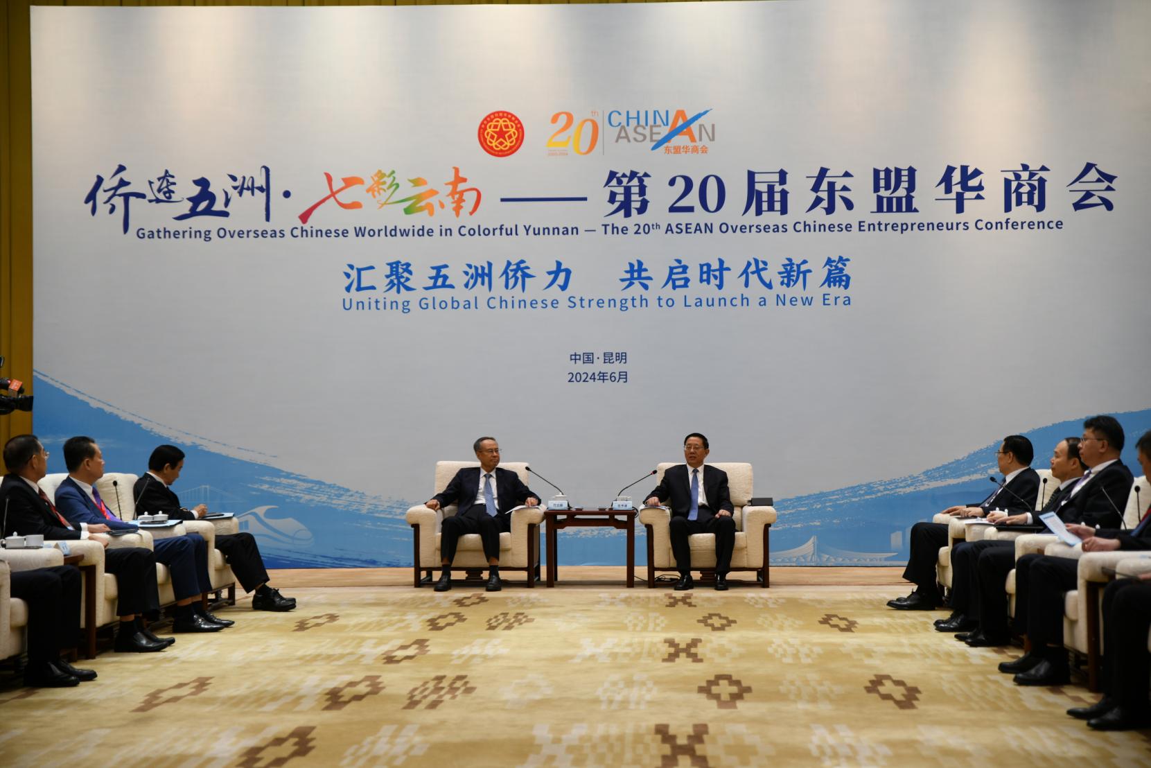 6月19日上午,由中國僑聯和云南省人民政府共同主辦,云南省僑聯、云南省僑辦、云南省商務廳、云南省投資促進局、致公黨云南省委會承辦的“僑連五洲·七彩云南——第20屆東盟華商會”在昆明隆重開幕。中國僑聯黨組書記、主席萬立駿出席開幕式并致辭,云南省委書記王寧與嘉賓代表見面交流,云南省委副書記、省人民政府省長王予波致辭并作云南推介,中國僑聯黨組成員、副主席程學源、云南省委常委、省委統戰部部長張治禮、中國僑聯副主席劉藝良出席開幕式,云南省人民政府黨組成員、副省長王浩主持開幕式。來自日本、泰國、澳大利亞、墨西哥、古巴、法國、香港、澳門等50個國家和地區的約270名僑商僑領線下參會。
