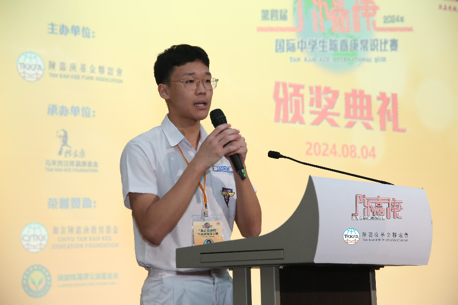 2024年8月4日,第四屆國際中學生陳嘉庚常識比賽頒獎典禮暨“重走嘉庚路”馬來西亞游學團結營儀式在吉隆坡圓滿落幕,中華人民共和國駐馬來西亞大使館領事處一等秘書王軍、陳嘉庚基金聯誼會副主席兼中國華僑公益基金會陳嘉庚教育公益基金發起人拿督陳友信、集友陳嘉庚教育基金副主席陳耀輝、閩都陳嘉庚公益基金會秘書長朱孟楠、中國華僑公益基金會項目部主任矯江莉、馬來西亞吉隆坡暨雪蘭莪中華大會堂會長顏登逸、菲律賓廈門聯誼會常委劉家寶等嘉賓出席頒獎典禮。