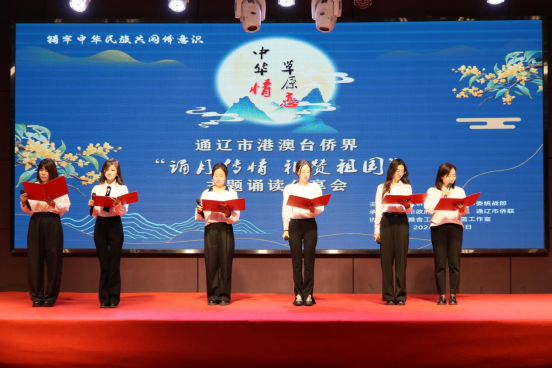 9月11日,由自治區僑聯與通遼市委統戰部主辦,通遼市政府僑辦、市僑聯承辦的“誦月傳情 禮贊祖國”通遼市港澳臺僑界鑄牢中華民族共同體意識主題誦讀分享會在通遼市舉辦。自治區僑聯黨組書記、主席王宏華出席活動并致辭,通遼市委常委、統戰部部長王剛出席活動并致辭,通遼市人大常委會副主任于久彥,通遼市政協副主席、民盟通遼市委主委白紅梅,通遼市委統戰部常務副部長郭明群,通遼市僑聯黨組書記、主席孫福全等參加活動,80余名港澳臺僑界的代表人士歡聚一堂,共同慶祝中秋佳節,喜迎新中國75周年華誕。