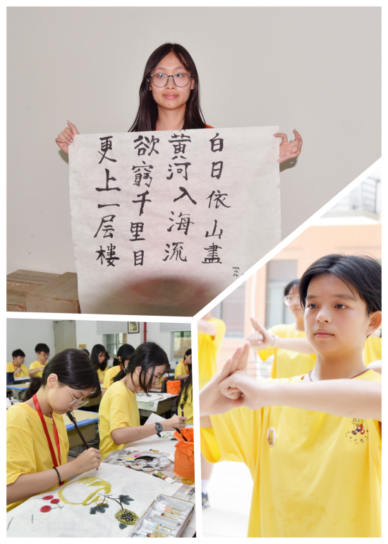 印尼營員陳建元開心的說“我以前學過武術,這次體驗了中華武術課,感覺非常神奇?!边@是他第一次來到福建,感覺很有趣,很開心有機會能深入了解中國文化?!皶ê蛧嬚n很有意思!”熱愛中國傳統文化的黃莉娜對于剪紙、書法、國畫等課程尤為喜歡,第一次上書法課的她在老師的指導下完成了王之渙的《登鸛雀樓》,老師和同學們都為她點贊,她開心地表示,一定要把這幅作品帶回印尼,當作禮物送給爸爸和媽媽。