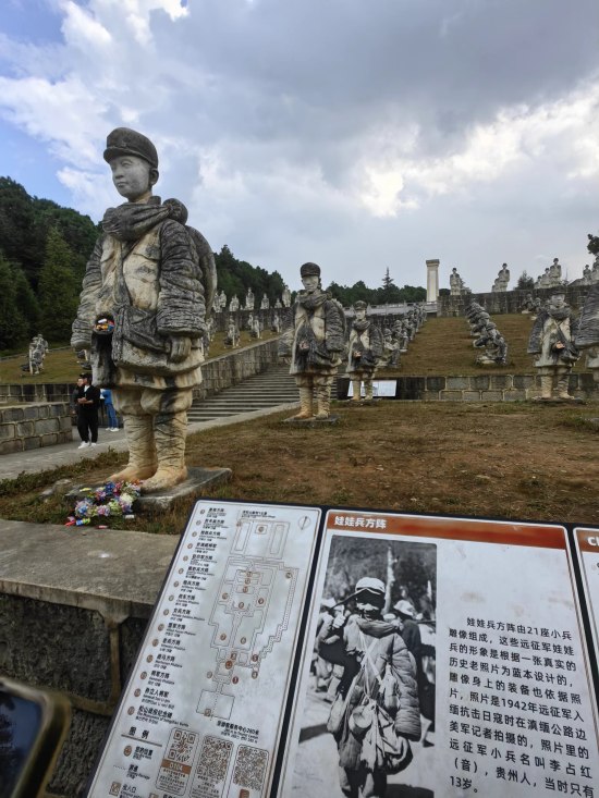 英魂無言,松濤陣陣。在松山抗戰遺址,采訪團一行向抗戰英烈敬獻鮮花,懷著激動的心情探訪了目前保存最為完好的二戰戰場遺址。松山戰役紀念碑前的中國遠征軍雕塑群由老兵方陣、娃娃兵方陣、炮兵方陣等13個雕塑方陣402座雕塑組成,古榕樹上還保留著當年的彈孔,向今天的人們訴說著當年戰役的慘烈?!拔以趨⒂^中國遠征軍雕塑群時,巧遇一名穿著粉色衣服的女孩穿梭于娃娃兵方陣里,給塑像手里塞糖果。我看到在龐大的方陣里,塑像的手里、腳下,甚至是‘槍托’里,都塞滿了五顏六色的糖果和零食。我想,這包含的不僅是人們對抗戰英雄們的緬懷,更多的是心疼,他們用最直接和最質樸的行動在訴說著和平年代的人們對這些先烈們的感激之情?!辈稍L團成員、尼日利亞西非統一商報副社長王淑華感動地說道。