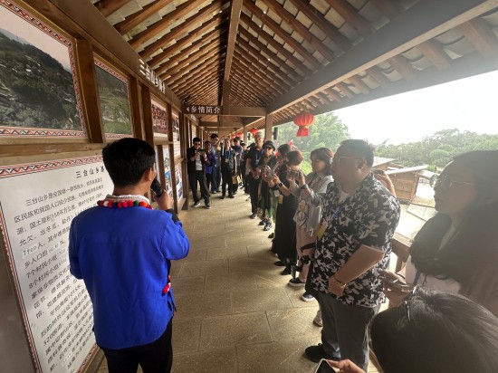 德宏州芒市三臺山德昂族鄉是中國唯一的德昂族鄉,出冬瓜村便隸屬于此。出冬瓜村始建于明、清時期,是傳統的德昂族村落,村內至今仍保留著德昂族古樸原始的民居民風民俗,現有“水鼓舞”“達古達楞格萊標”“澆花節”“德昂族酸茶制作技藝”4個(中國)國家級非物質文化遺產名錄。采訪團一行來到出冬瓜村,訪鄉風傳統、品德昂酸茶、看德昂水鼓舞、賞德昂織錦,感受中華優秀傳統文化和非遺文化的獨特魅力。三臺山出冬瓜村“僑胞之家+為僑特色服務+農業文旅融合+以“托啊姆”調解室提升社會綜合治理”的僑務創新工作也讓大家嘖嘖稱贊。