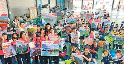 馬來西亞啟新學校學生展示海報。