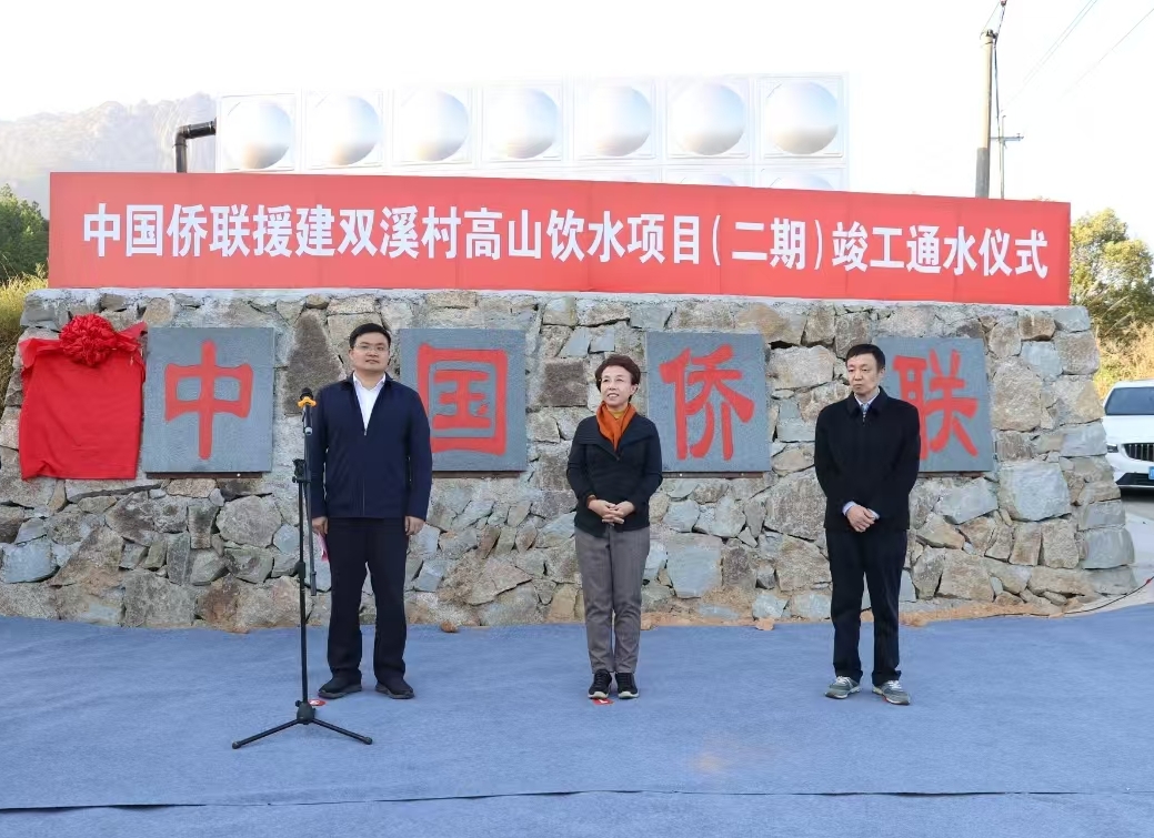 座談會后,程紅一行專程來到清水鄉雙溪村看望中國僑聯掛職干部,關心了解工作生活情況。程紅還親切慰問了村里80歲以上高齡老人代表,并贈送了血壓儀,祝福老人們健康長壽;為留守女童代表送上御寒棉衣和學習用品,鼓勵孩子們好好學習、天天向上。中國僑聯機關服務中心黨支部還與清水鄉雙溪村黨支部開展了結對共建活動。隨后,程紅出席了中國僑聯高山飲水項目(二期)竣工儀式,為項目揭牌并啟動水閘。