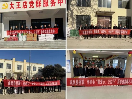 縣僑聯和縣僑商會還到成武縣南魯集鎮王店村、黨莊村,茍村集鎮駐地及中心敬老院等處開展“獻愛心 公益行”新春送溫暖活動,捐贈米、面、油、牛奶等各300余份,走訪僑眷和困難群眾。