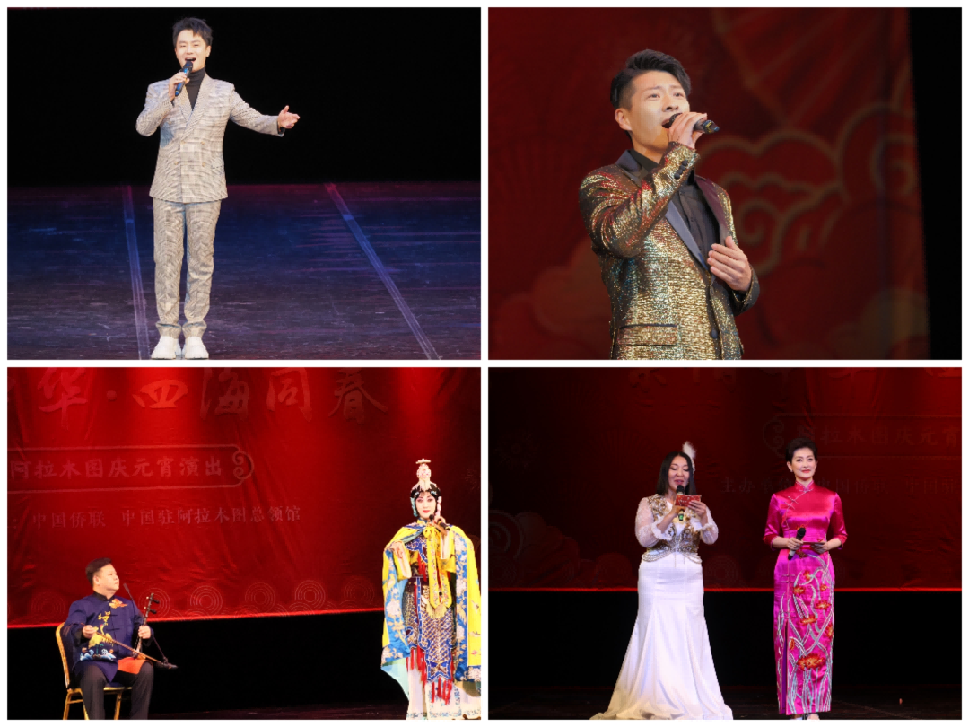 北京歌舞劇院國家一級演員金響帶來經典歌曲《牽手》《大中國》,用歌聲詮釋了中哈人民的深情厚誼,偉大祖國的自信豪邁。中國東方演藝集團于海洋深情演繹《節日快樂》《想家的時候》,傳遞出思鄉的情感和節日的祝福。中國煤礦文工團趙越獻唱《在那遙遠的地方》《燈火里的中國》,描繪出新時代中國燈火漫卷萬里山河的浪漫與氣派。中國煤礦文工團國家一級演員左煒帶來《我的中國心》《青春舞曲》,以熟悉的旋律和動人的演唱點燃觀眾熱情。